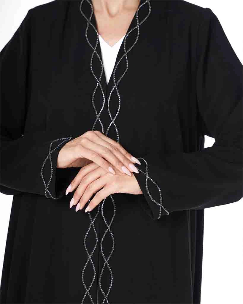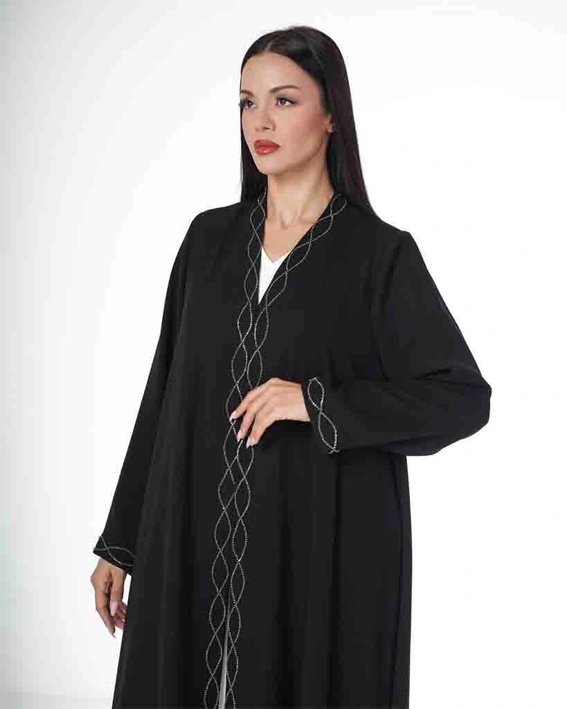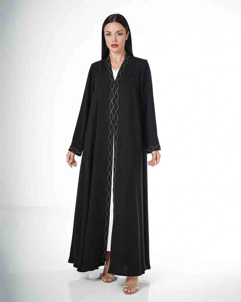 A black abaya with an elegant design that reflects refined taste and subtle luxury.