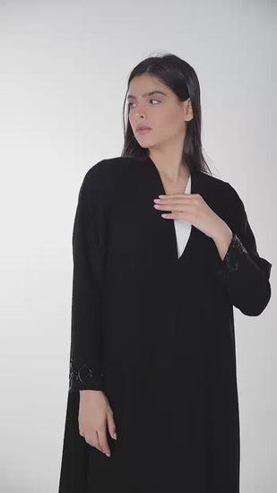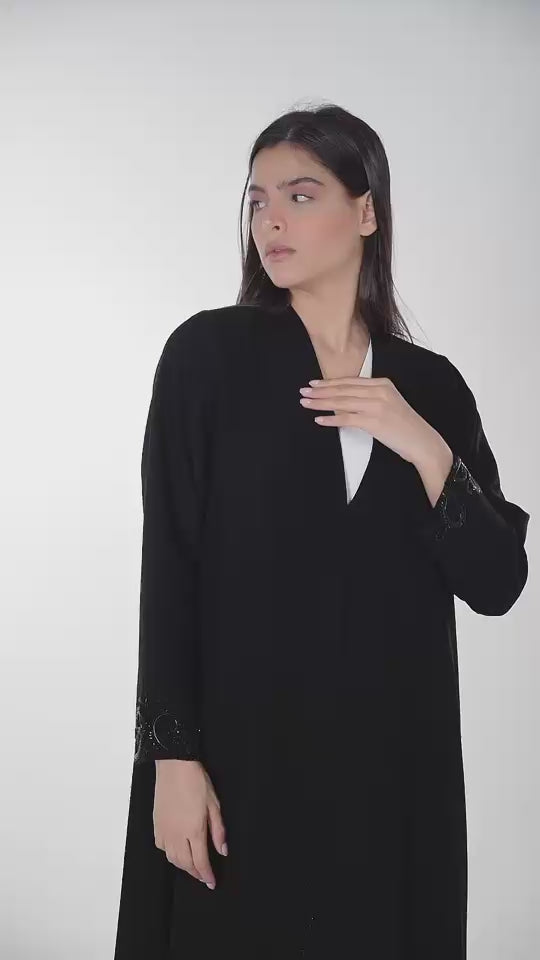 Black Abaya with Beaded Swirl Embroidery on Cuffs
